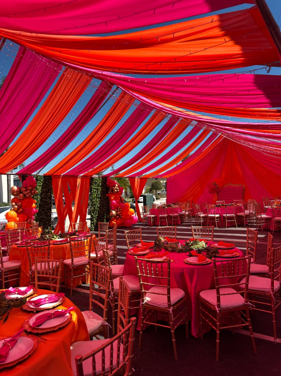 Price shown is only for tent/drapes and does not include tables,chairs,draping or balloons.